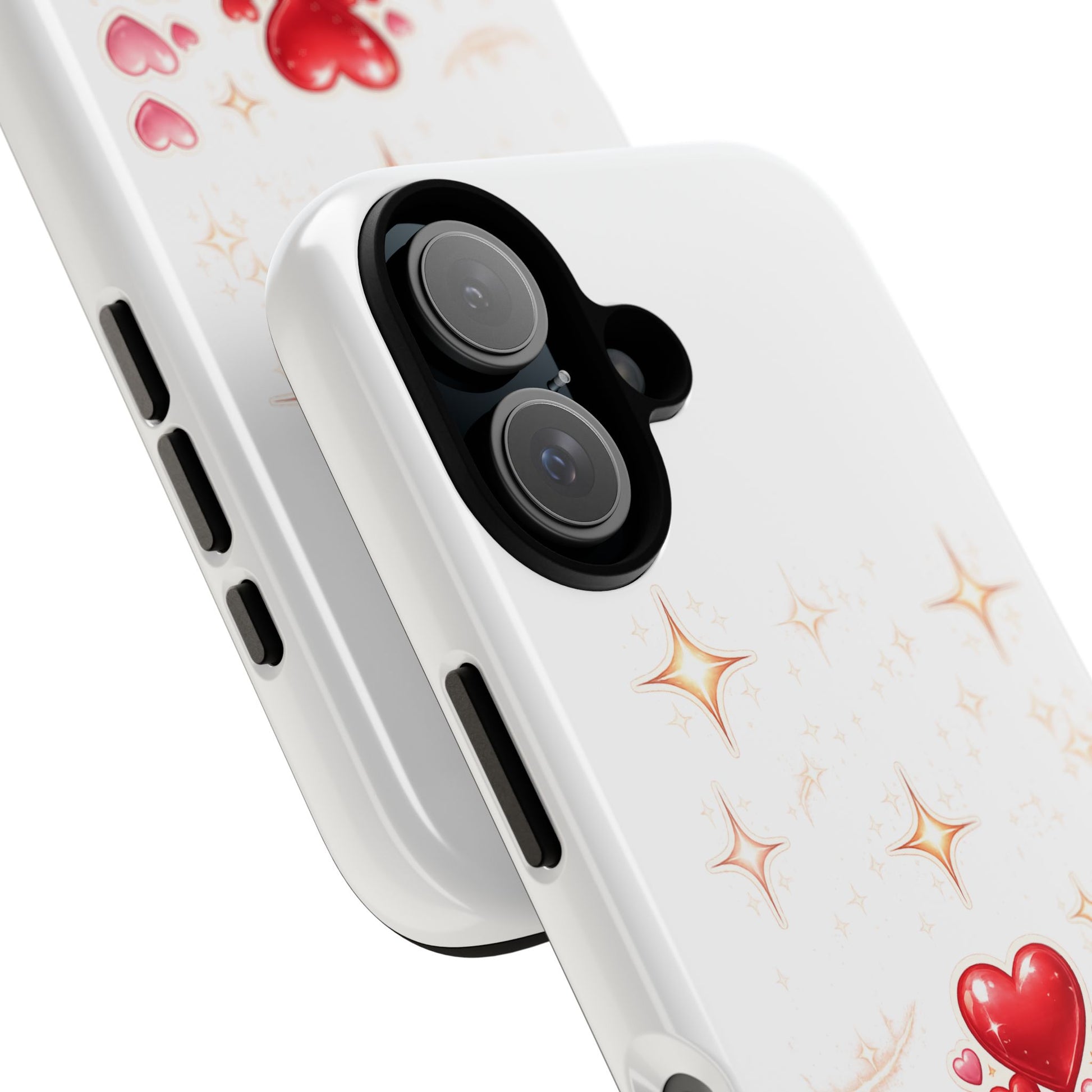 Lightweight yet protective, this dual-layer phone case brings a playful, heart-filled palette to your daily carry. Soft glossy or matte coating and a snug TPU silicone liner absorb shocks while a sturdy polycarbonate shell shields against drops and scrapes. The artful cluster of glossy red and pink hearts with subtle sparkles feels like a small celebration every time you reach for your phone — a sweet, low-key way to show warmth and affection in everyday moments. Weather-resistant inks and a full 3D wrap keep the design vivid, while clear port openings and wireless charging compatibility make the case easy to use without removing it. Treat your device to protection that’s both functional and cheerful.